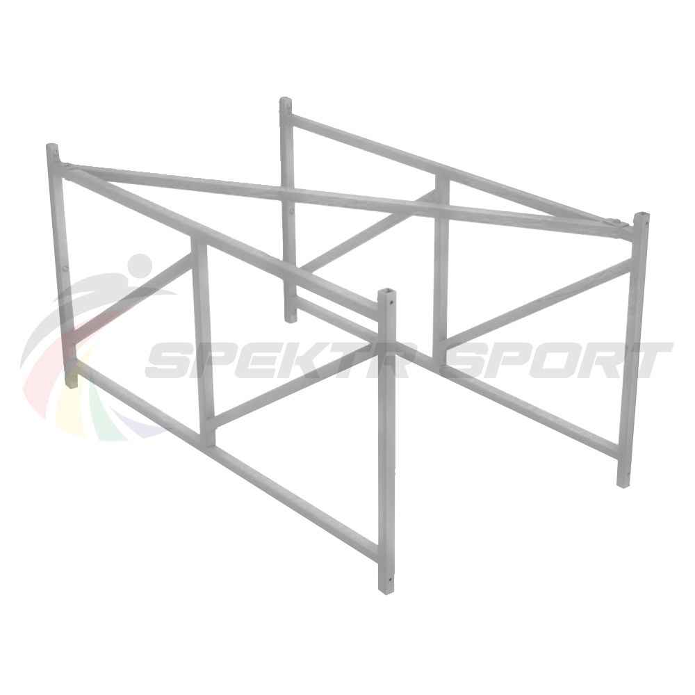 Одна косая связь (диагональная балка) связывает две цельносварные рамы. Таким образом, конструкция достаточно прочная и надежная для размещения на ней тренировочного баскетбольного щита.